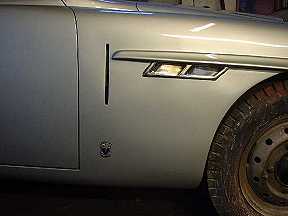 Don't the side badges, above, and grille (all restored by John Blaze) look gorgeous? At this stage the Farina Jup is nearly ready except that Pat has yet to solve the problem of getting a new windscreen for it. |